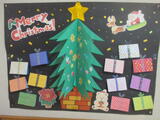 開始直後から児童の作品が多く寄せられ、ツリーはほぼ完成。図書館前に掲示されていますが、クリスマスの雰囲気をより醸し出しています。